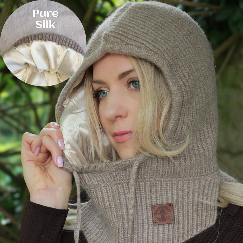 Mit Kaschmir und Seide gefütterte Damenmütze, winddichte Wintermütze, ideal für dickes, lockiges, krauses Haar, Geschenk für Sie