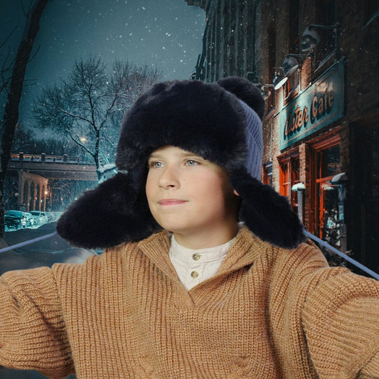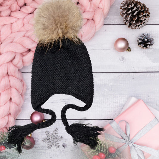 Wintermütze für Kinder mit Ohrenklappen, Beanie aus Kunstfell, Winddichte Jungenmütze mit Bommel, Mädchenmütze, Geschenk für Kinder