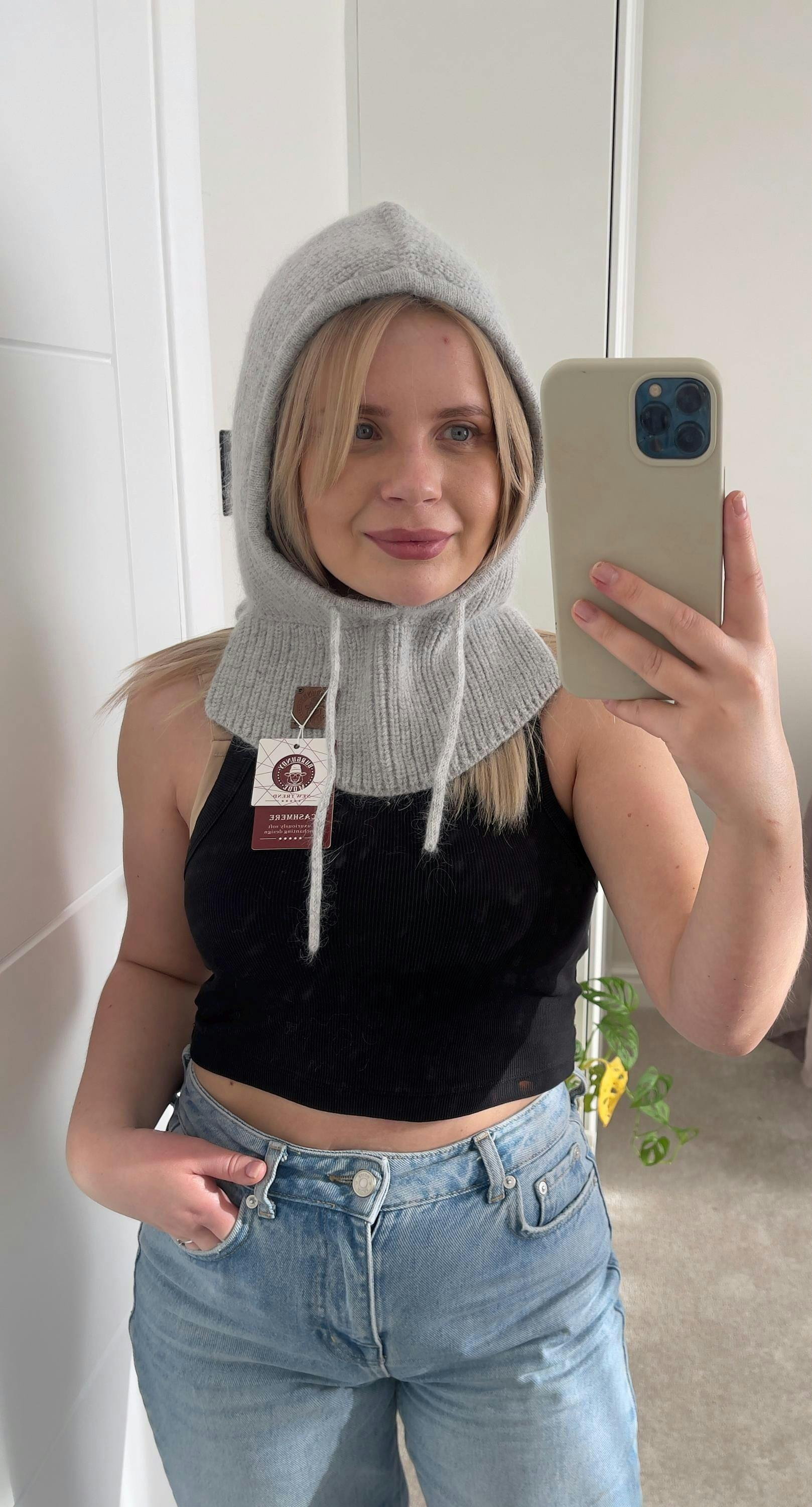 Wir stellen unsere exquisite Sturmhaube aus Kaschmir vor – die Winterkapuze aus Kaschmir für Damen, das perfekte Geschenk für sie, erhältlich in zwei stilvollen und vielseitigen Farben: Grau und Beige.