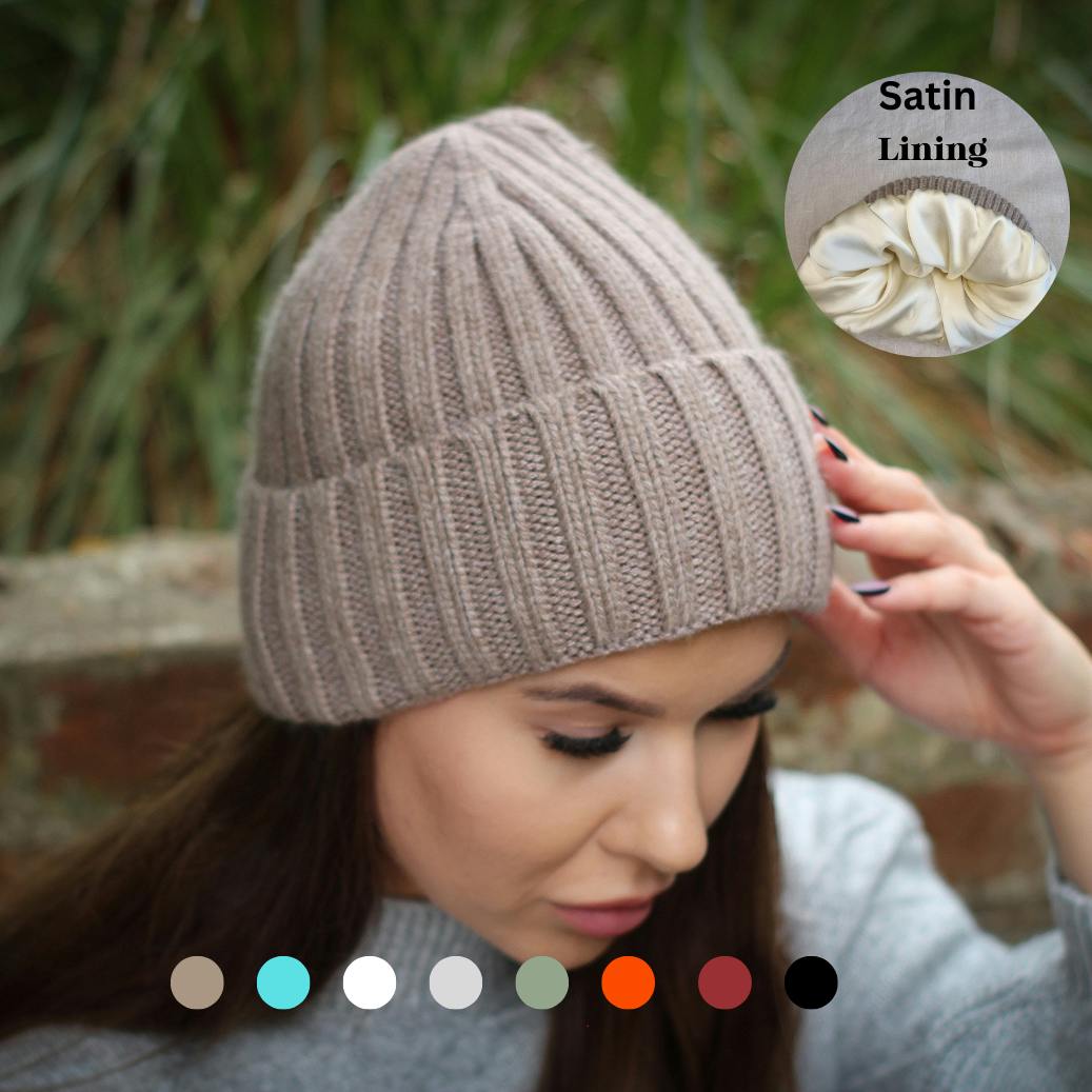 Bonnet pour femme doublé de soie et cachemire de petite taille, bonnet coupe-vent d'hiver, idéal pour les cheveux épais, bouclés et sans frisottis, cadeau pour elle
