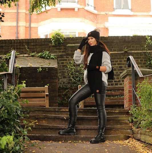 Ensemble en cachemire pour femme : bonnet à pompon en fourrure de renard, gants, écharpe, ensemble en tricot, ensemble d'hiver en cachemire pour femme, douillet et doux. Cadeau pour elle.