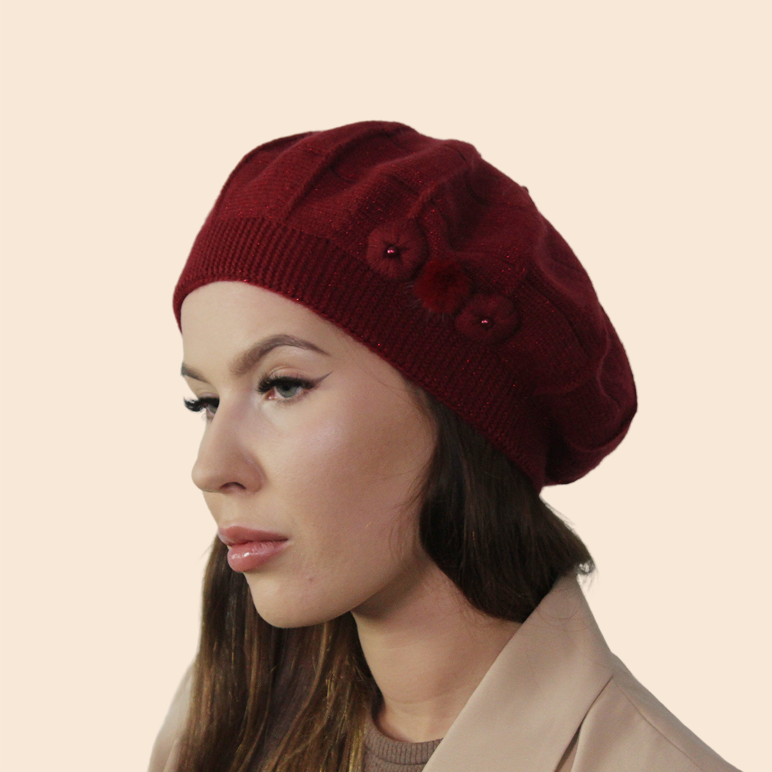 Béret en cachemire, Chapeau d'hiver pour femme, Béret en cachemire français, Béret scintillant, Cadeau pour elle