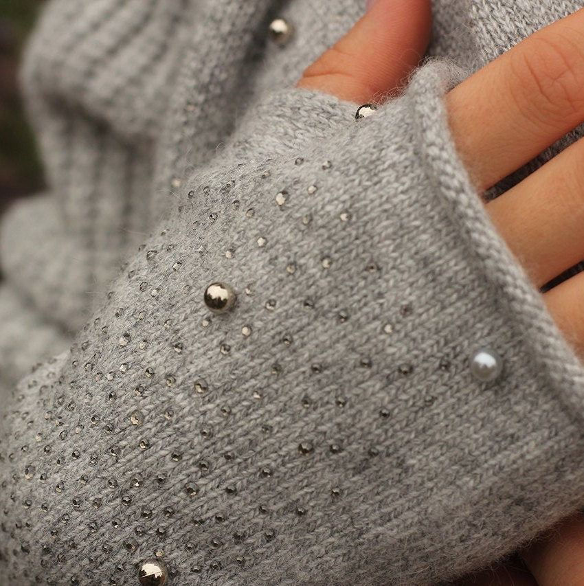* Superbe design de petits cristaux et de perles en acier inoxydable (pour les gants, la broderie s'applique uniquement au côté supérieur et pour l'écharpe, la broderie s'applique uniquement à l'extrémité de l'écharpe)