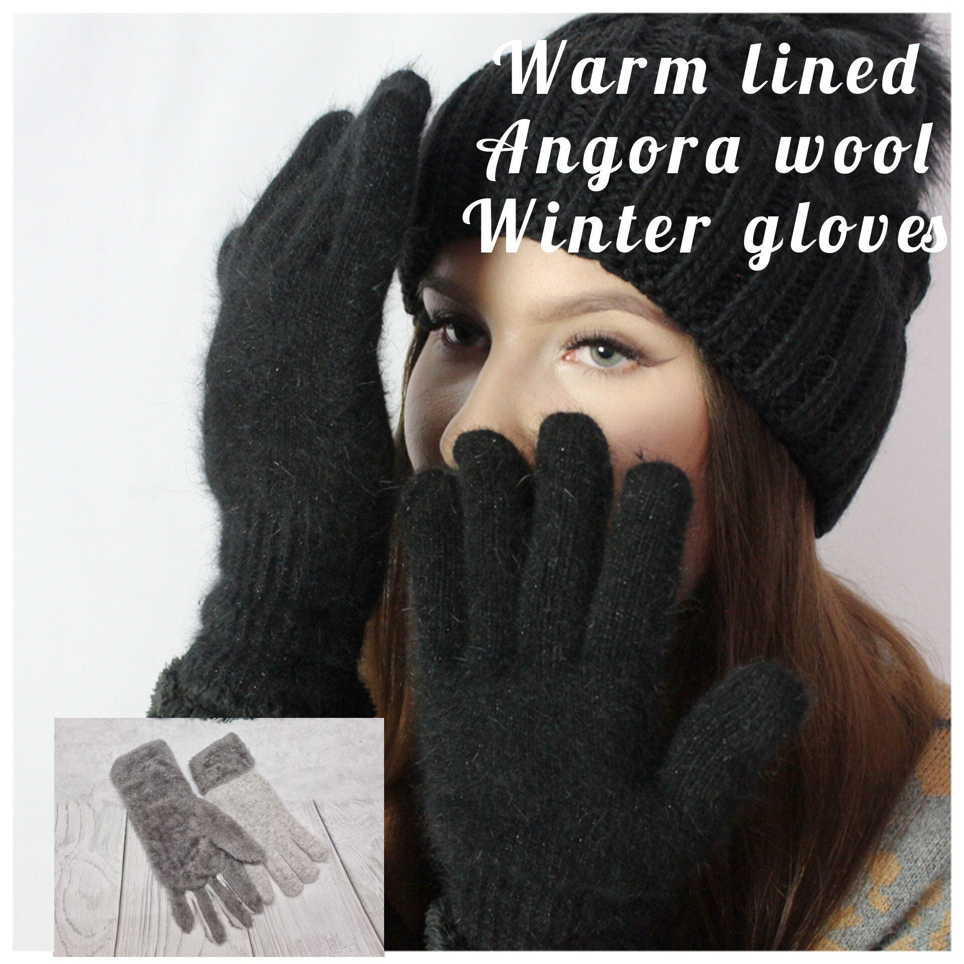 Angora wool gloves, lined gloves, warm and thick womens winter gloves.