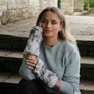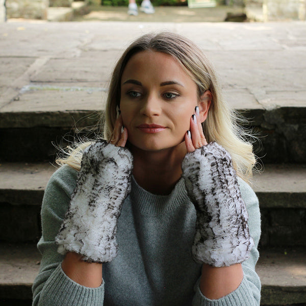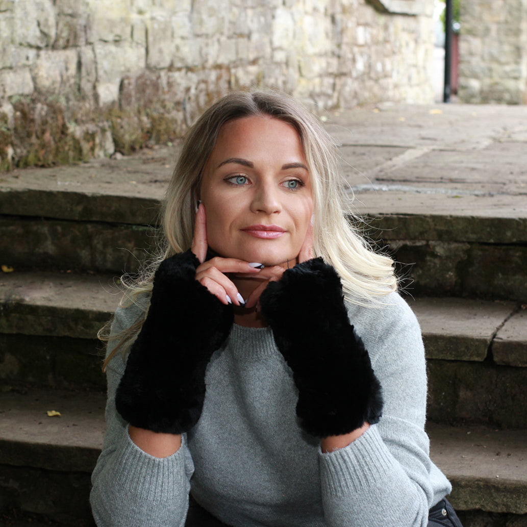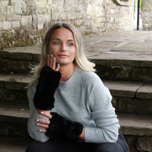 Natural Rabbit Fur Fingerless Gloves – Soft Knit Winter Hands and Wrists Warmers, Luxury Gift for Her